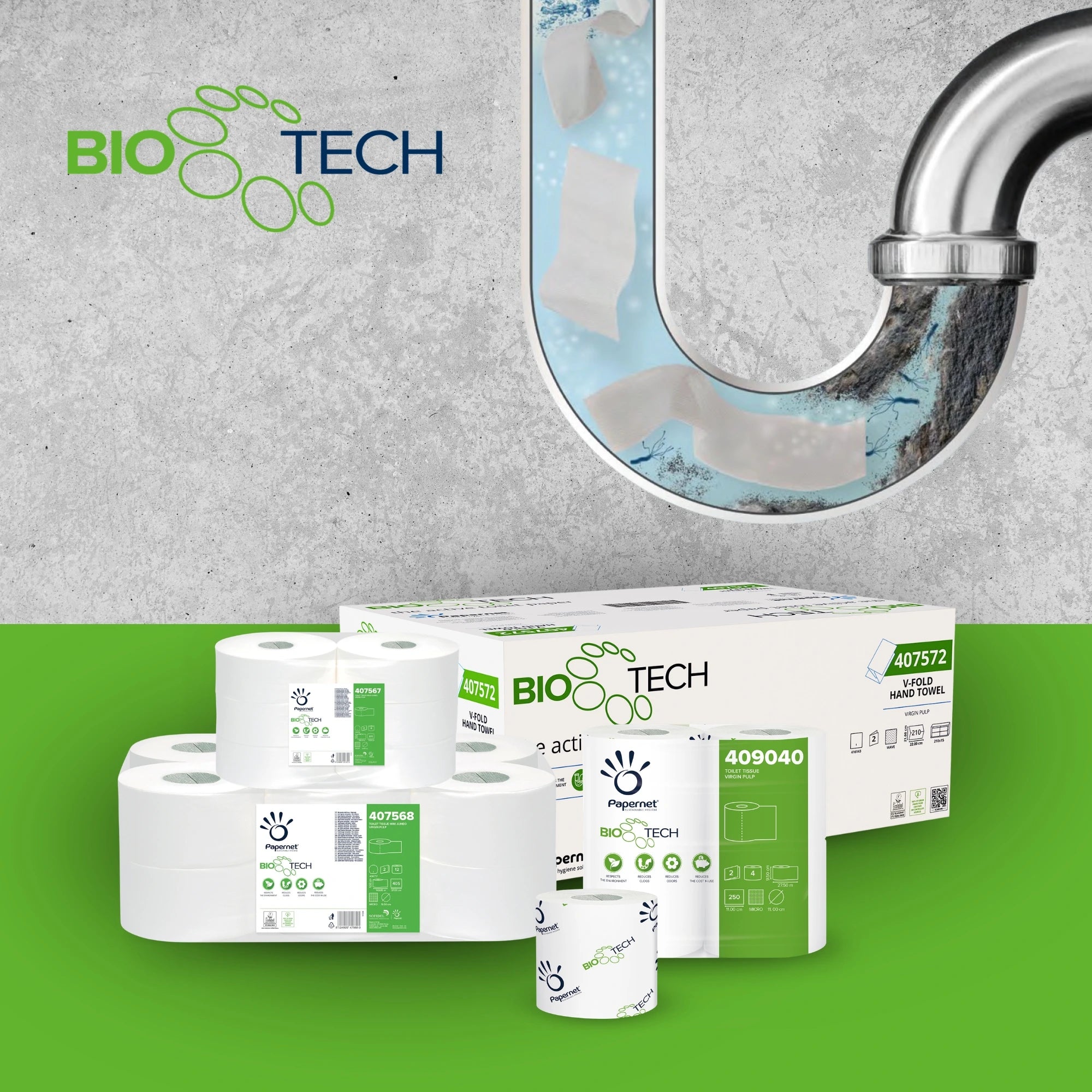 Papernet überzeugt nicht nur durch Qualität, sondern auch durch Innovation. Besonders bekannt ist die Bio Tech-Technologie, die durch spezielle Mikroorganismen Ablagerungen in Abflusssystemen reduziert und so Reinigungskosten senkt. Dadurch vereinen Papernet-Produkte ökologische Verantwortung und praktischen Nutzen auf höchstem Niveau.
