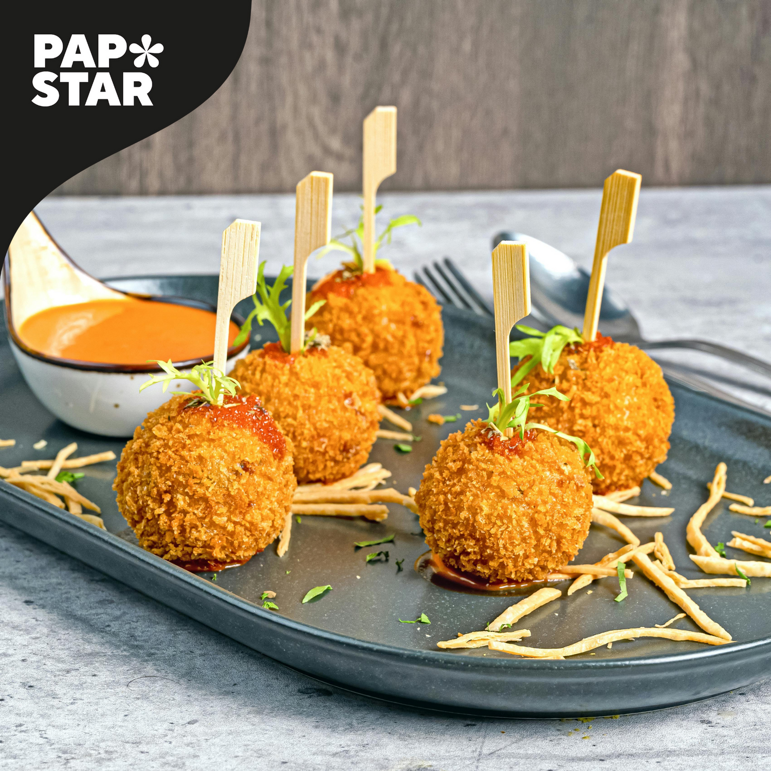 - Bambusspieße: Langlebig, umweltfreundlich und besonders für kleinere Häppchen geeignet. Die formschönen Fingerfood-Picker von Papstar aus Bambus sind die perfekte Wahl, um kleine Häppchen stilvoll zu präsentieren. Mit den PAPSTAR Fingerfood Pickern erhalten Sie Spieße, die Sie individuell beschreiben können. Diese Spieße sind besonders praktisch, wenn Sie Ihre Speisen für bestimmte Allergiker kennzeichnen wollen.