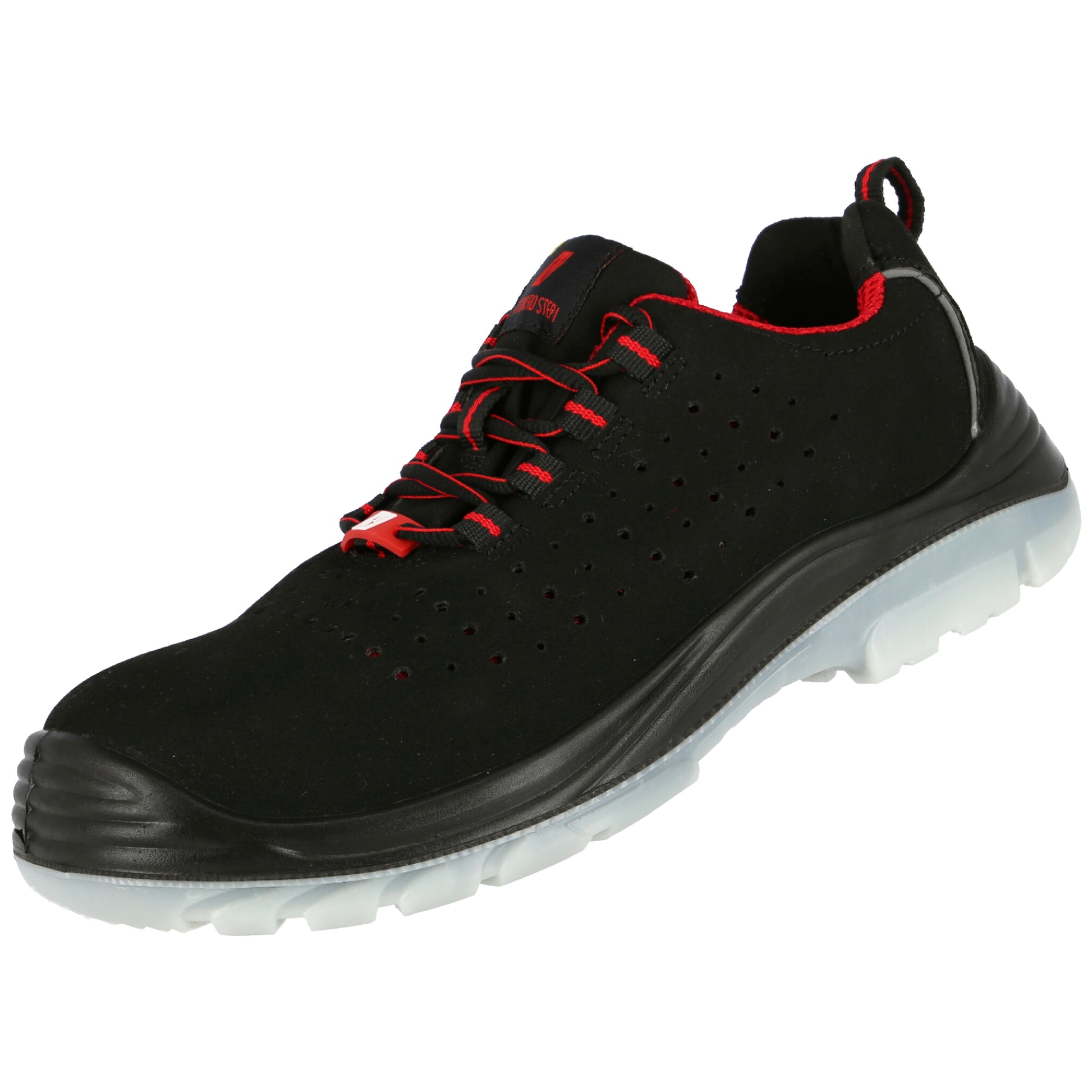 NITRAS MICRO STEP, turvamatalat kengät, S1 P, kestävä mikrokuitu, musta (värikoodi: 1000), kestävä PU/TPU-ulkopohja, musta/läpinäkyvä, lasikuituinen kärki, puhkaisunkestävä tekstiilivälipohja, metalliton, laadukas COMFORT STEP -sisäpohja, ergonomisesti muotoiltu, heijastava muotoilu, 1 RC:n leveys. kantapää, kantapään vuoraus helppoon pukemista ja riisumista varten sekä kantapään vahvistus kestävästä mikrokuidusta, DGUV-sääntö 112-191 testattu, tyyppi 1, tyyppi 2, ESD-yhteensopiva, henkilönsuojaimen riskiluokka II